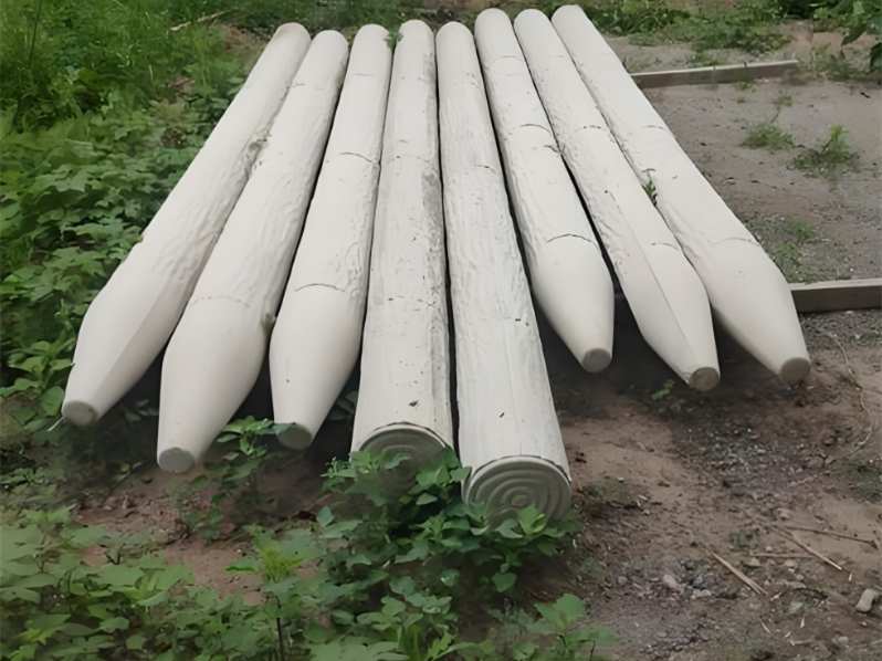 在水下和泥土交界的 “干濕交替區(qū)”,木樁腐蝕速度最快。但水泥仿木樁就不一樣,哪怕是有輕微污染的河水,比如含少量生活污水,也不會被腐蝕,因?yàn)榛炷敛粫晃⑸锓纸?,也不會和污水里的有機(jī)物發(fā)生反應(yīng)。再看鹽堿地或者沿海區(qū)域,這些地方的土壤、海水里含鹽量高,對金屬、木頭的腐蝕特別強(qiáng),普通鋼管半年就會生銹,天然木樁 1 年左右就會腐爛。但水泥仿木樁在這種環(huán)境下表現(xiàn)很穩(wěn)定,